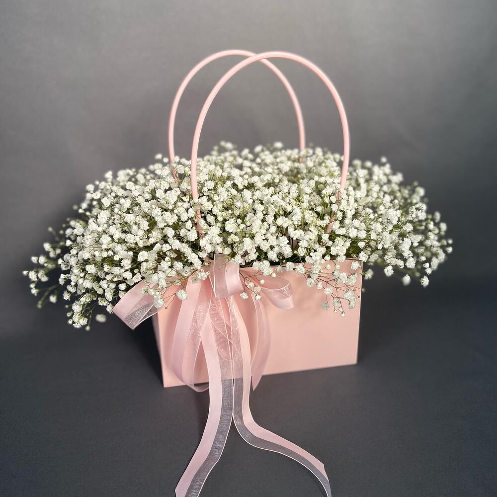 Белоснежная гипсофила в сумочке « Радость»