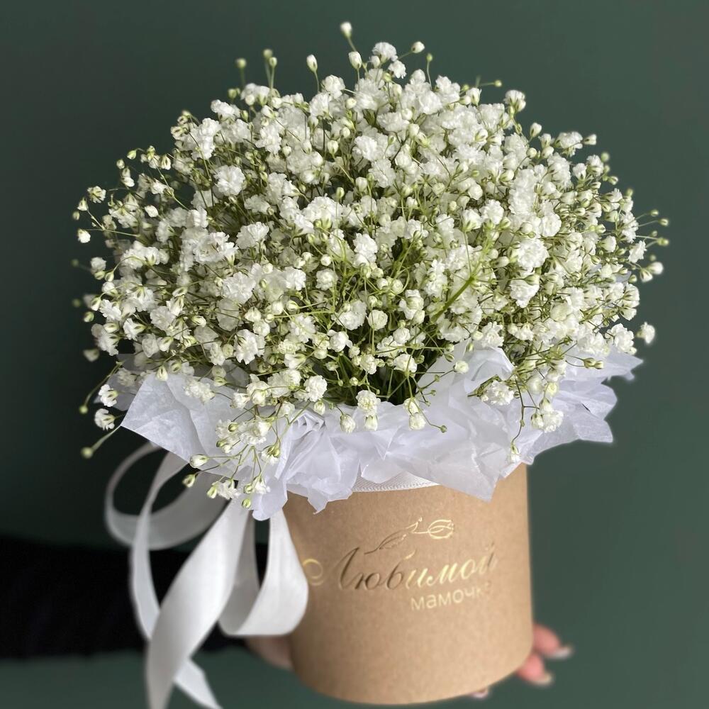 Гипсофила белая в коробке для мамы