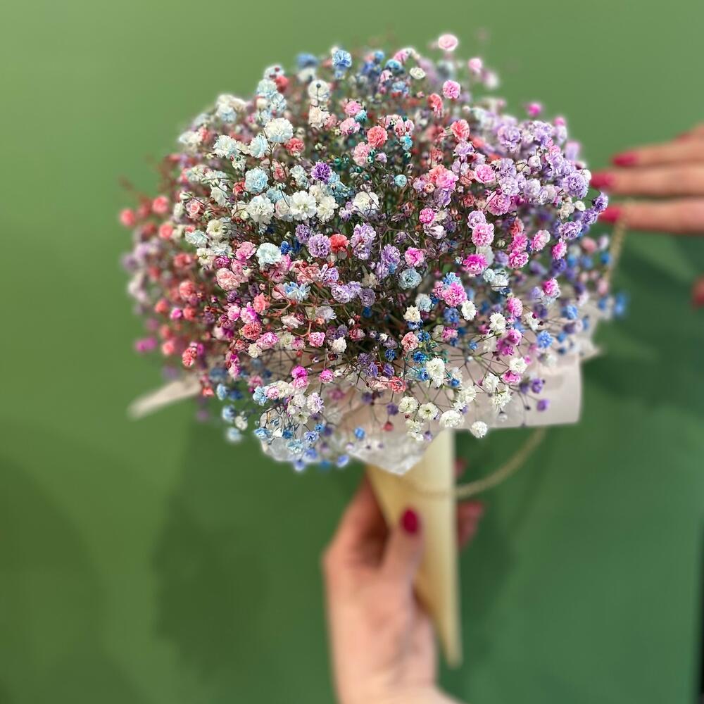 Гипсофила цветная в корзине 15 веточек