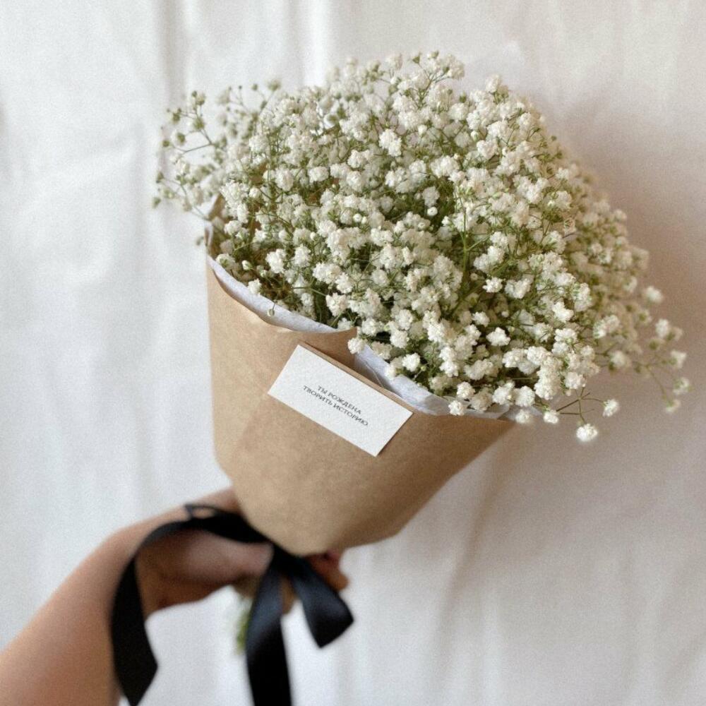 Гипсофила – 3 шт.Тишью – 1 шт.Крафт – 1 шт.Лента – 1 шт.