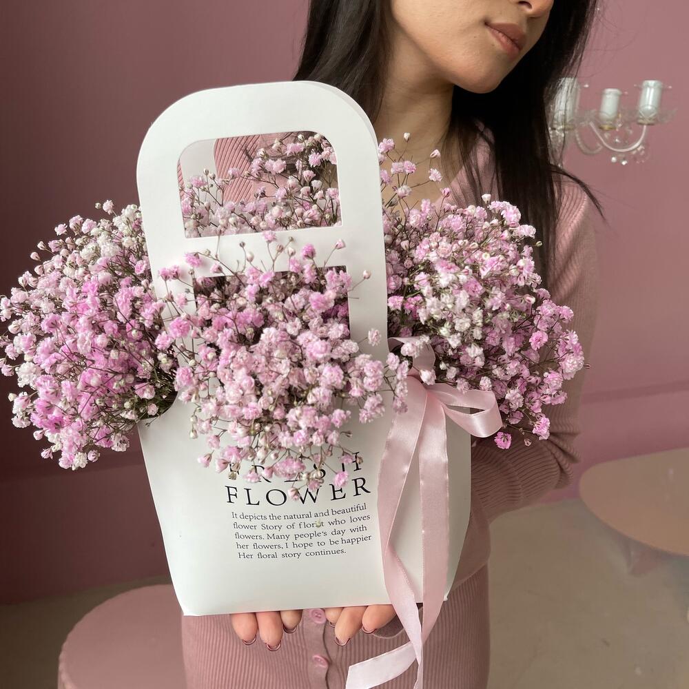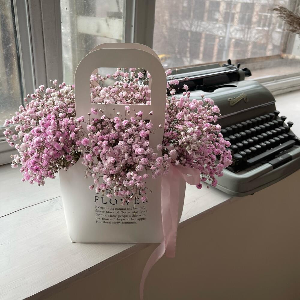 Стойкая гипсофила в крафтовом пакете – отличный подарок в день рождения!