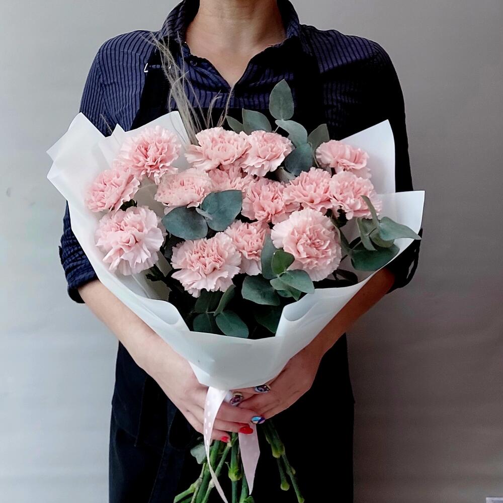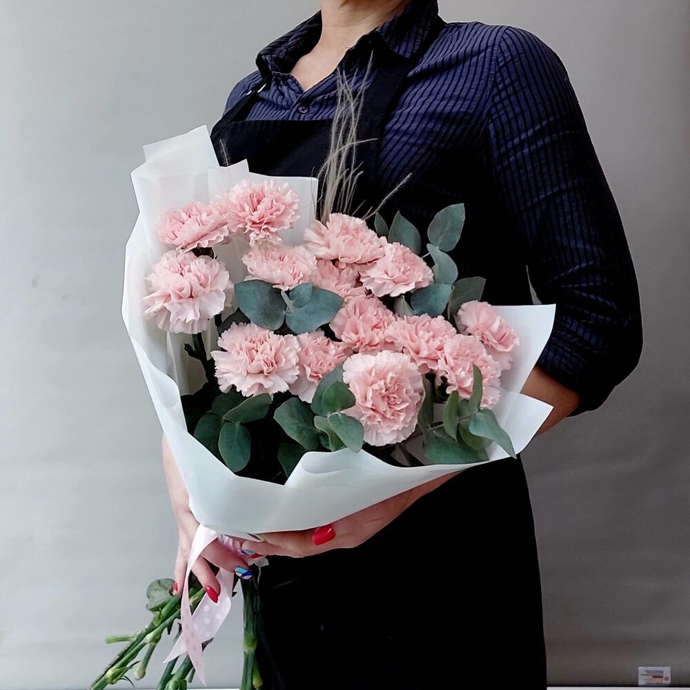 Букет диантусов (гвоздик) с эвкалиптом