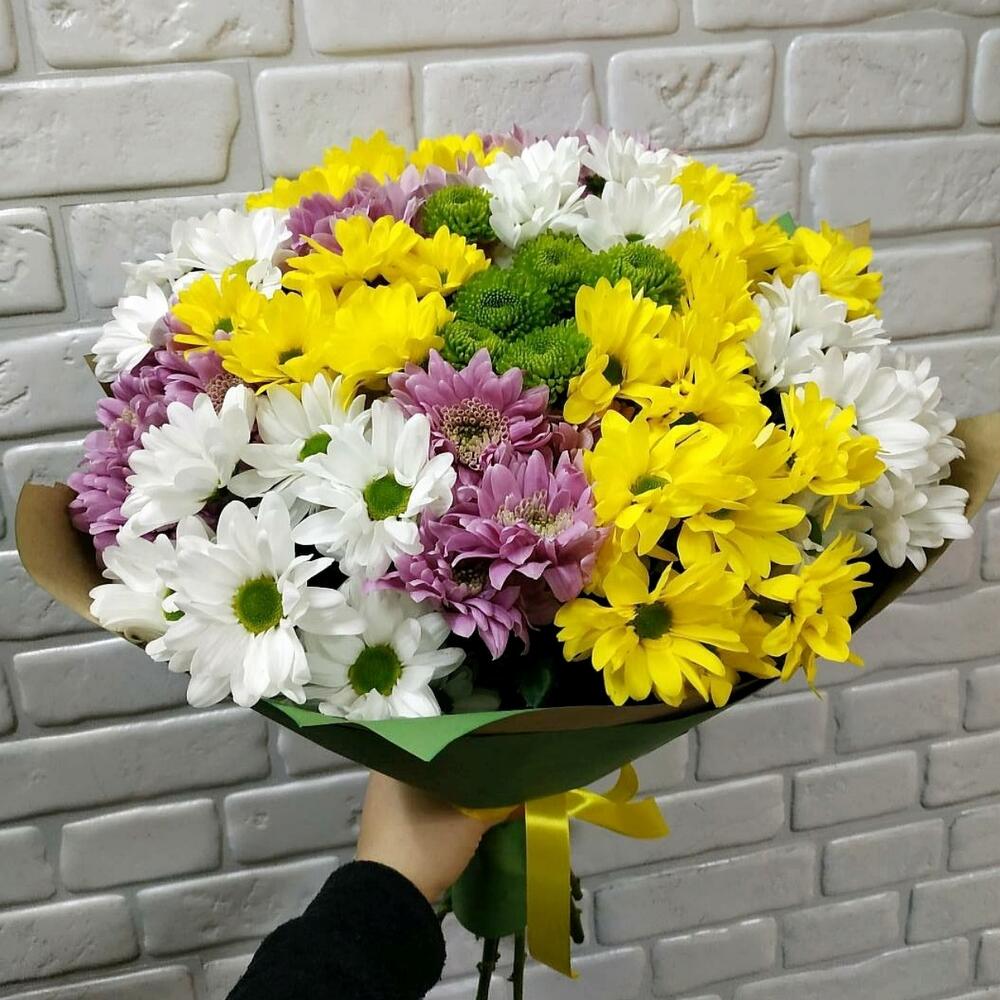 Состав букета: хризантема разноцветная- 19 веток.