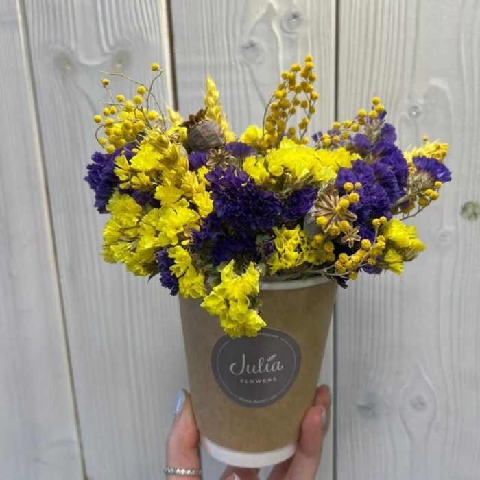 Букет из сухоцветов в фигурном кашпо «Последний звонок»