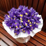 Красивый, яркий букет из 19 ирисов в крафте "Армантьер"