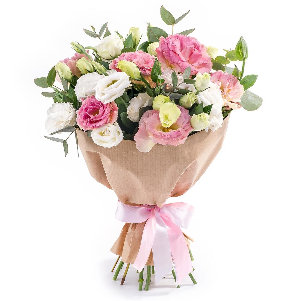 Лизиантус – 11 шт.Эвкалипт – 2 шт.Крафт бумага – 1 шт.