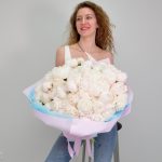 Лента атласная – 1 шт.Пион белый – 101 шт.Кризал (подкормка) – 1 шт.Пленка матовая – 5 шт.Аквапак – 1 шт.Фоамиран (упаковка) – 4 шт.инструкция по уходу за цветами – 1 шт.хорошее настроение в подарок – 1 шт.