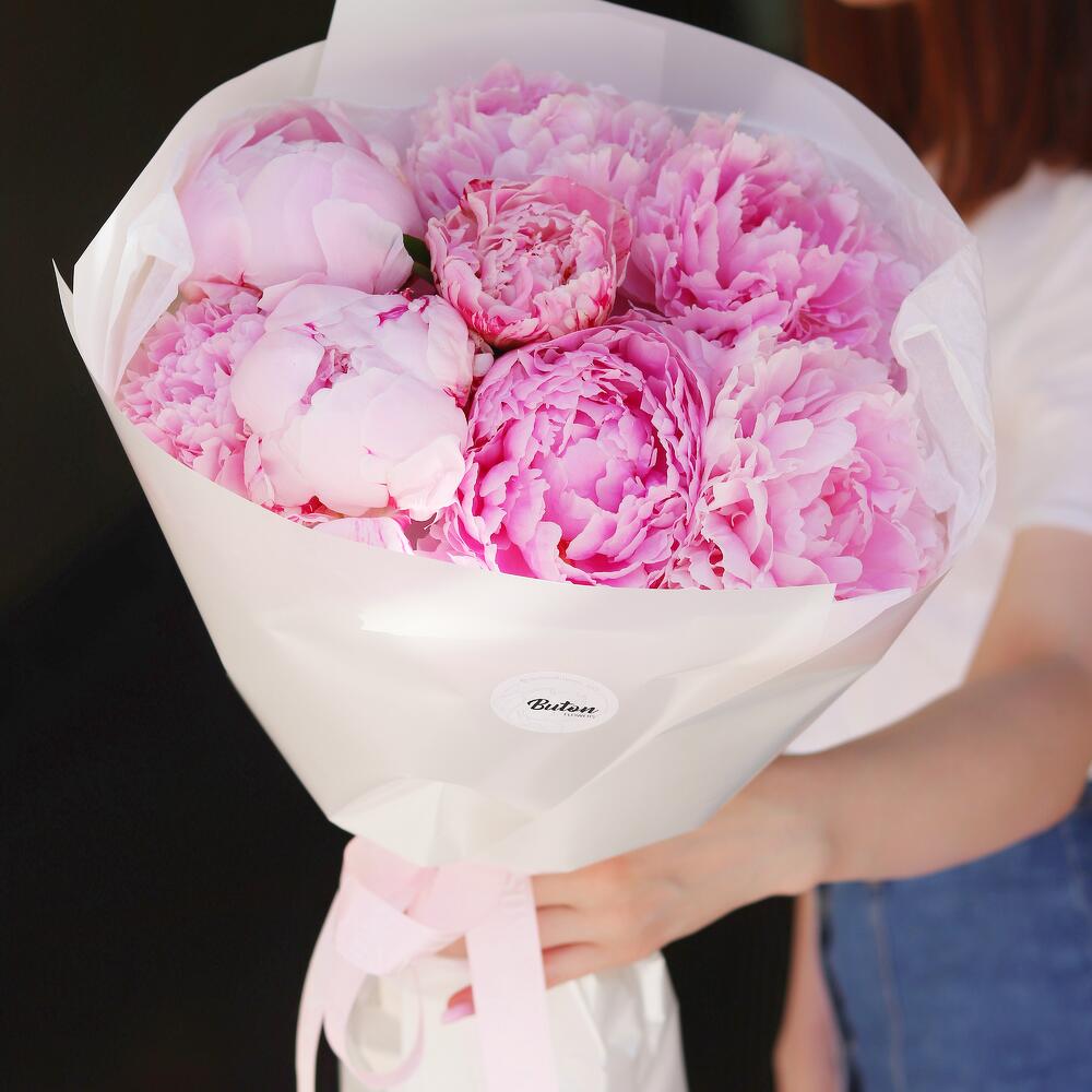 Моно из 9 розовых премиум пионов