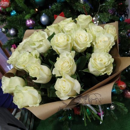 Букет 21 белая роза "Снежная Королева"