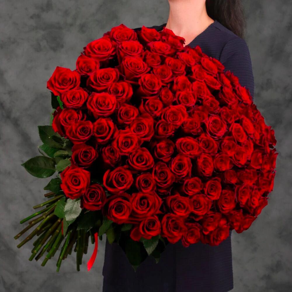 Метки: 101 роза, от 5000 руб, Роза 70 см