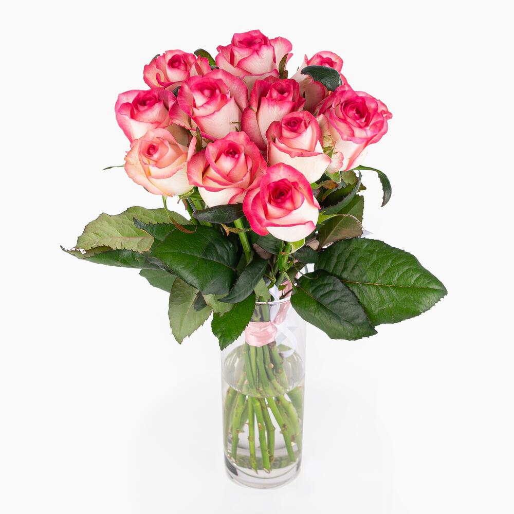 Небольшой букет из 11 бело-розовых роз Джумилия. Такой букет позволит Вам выразить свою симпатию и покорить сердце понравившейся девушки