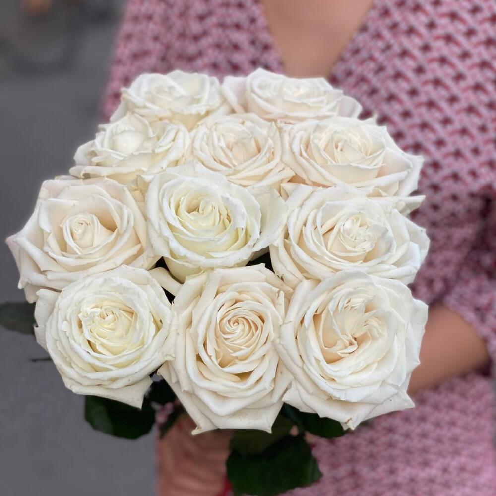 11 белых пионовидных роз
