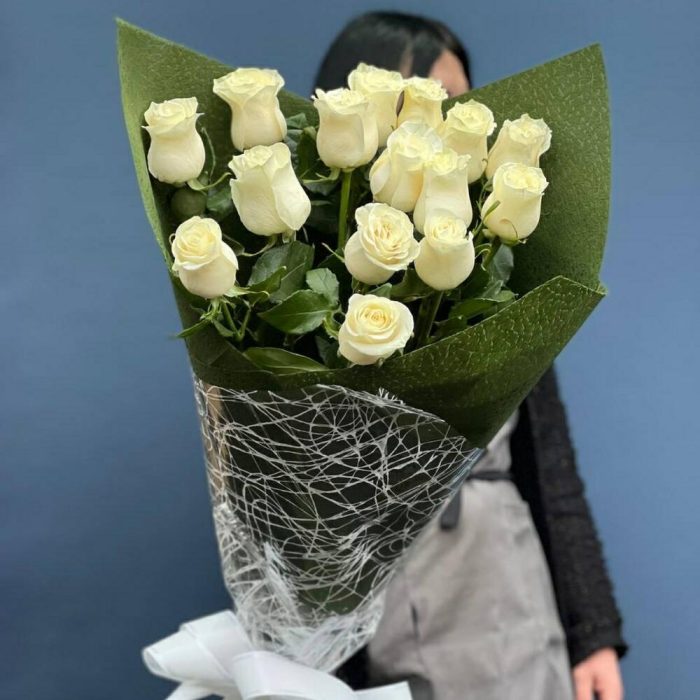 15 ароматных белых роз Мондиаль