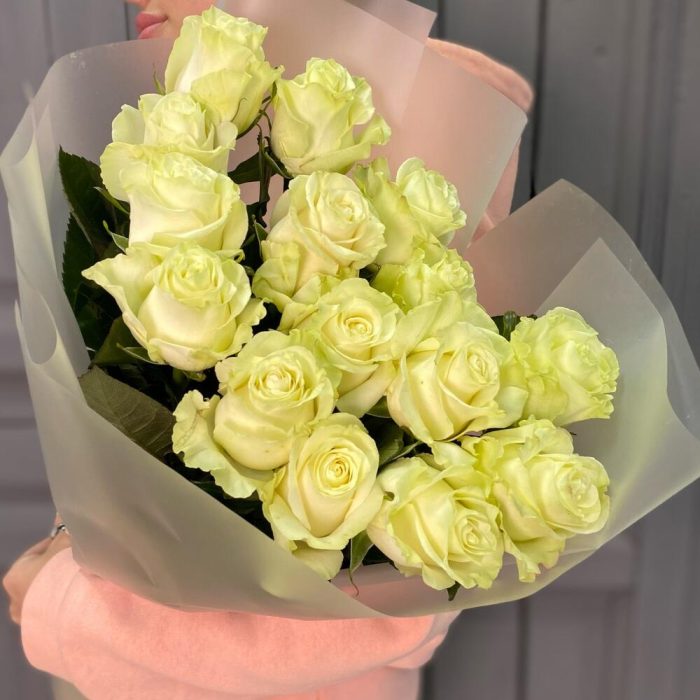 15 белых роз 60см Эквадор