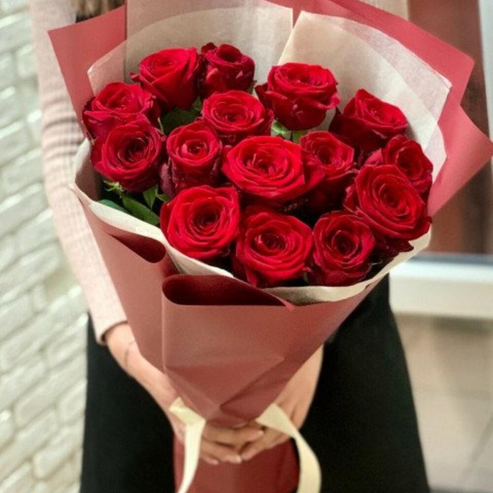 Метки: 15 роз, Красные розы, от 2000 до 3000 руб, Роза 70 см