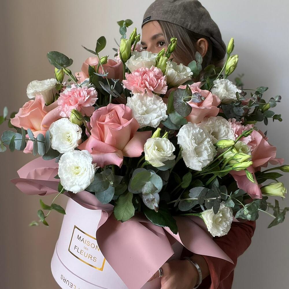 “В твоих глазах”: нежная шляпная коробка с французскими розами