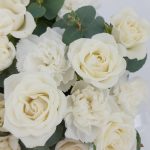 Лента – 2 шт.Эвкалипт – 3 шт.Гвоздика кустовая – 2 шт.Роза кустовая Эквадор – 3 шт.Пленка матовая – 1 шт.Флористическая губка (оазис) – 1 шт.коробка цилиндр d12 – 1 шт.