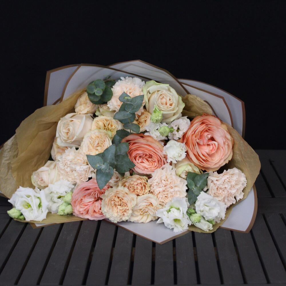 Категорий: Гвоздики, Кустовые розы, Лизиантусы, Пионовидные розы, Розы