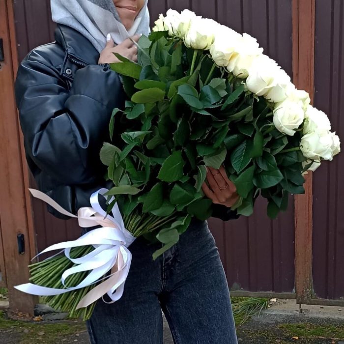 Букет 101 Белая Роза 70см