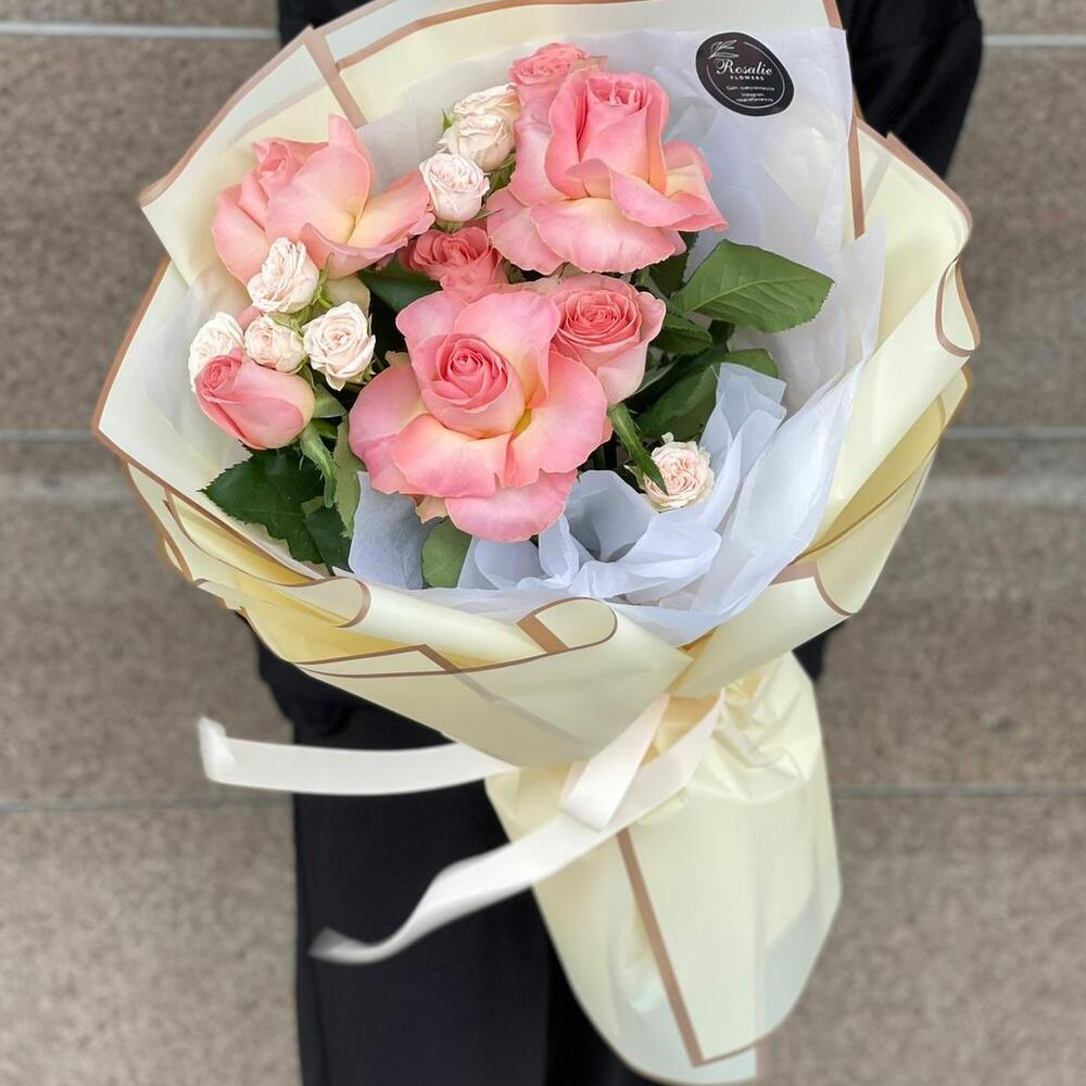 Альстромерии, Гвоздики, Кустовые розы, Лизиантусы, Розы, Хризантемы