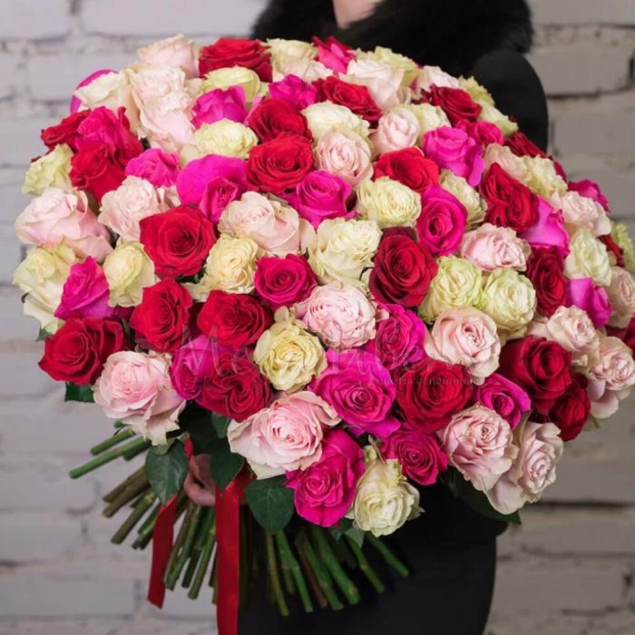 Букет из 101 розы нежный микс 35-40 см (Кения) в упаковке
