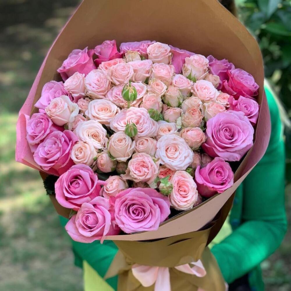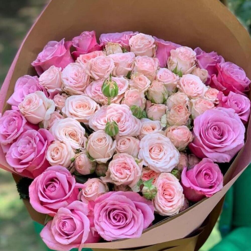 Букет из одноголовых и кустовых роз