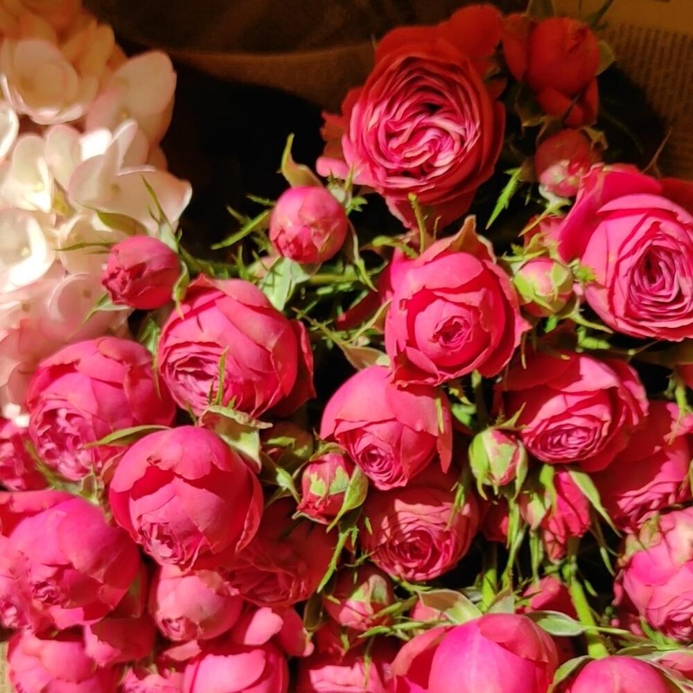 Гвоздики, Кустовые розы, Пионовидные розы, Розы