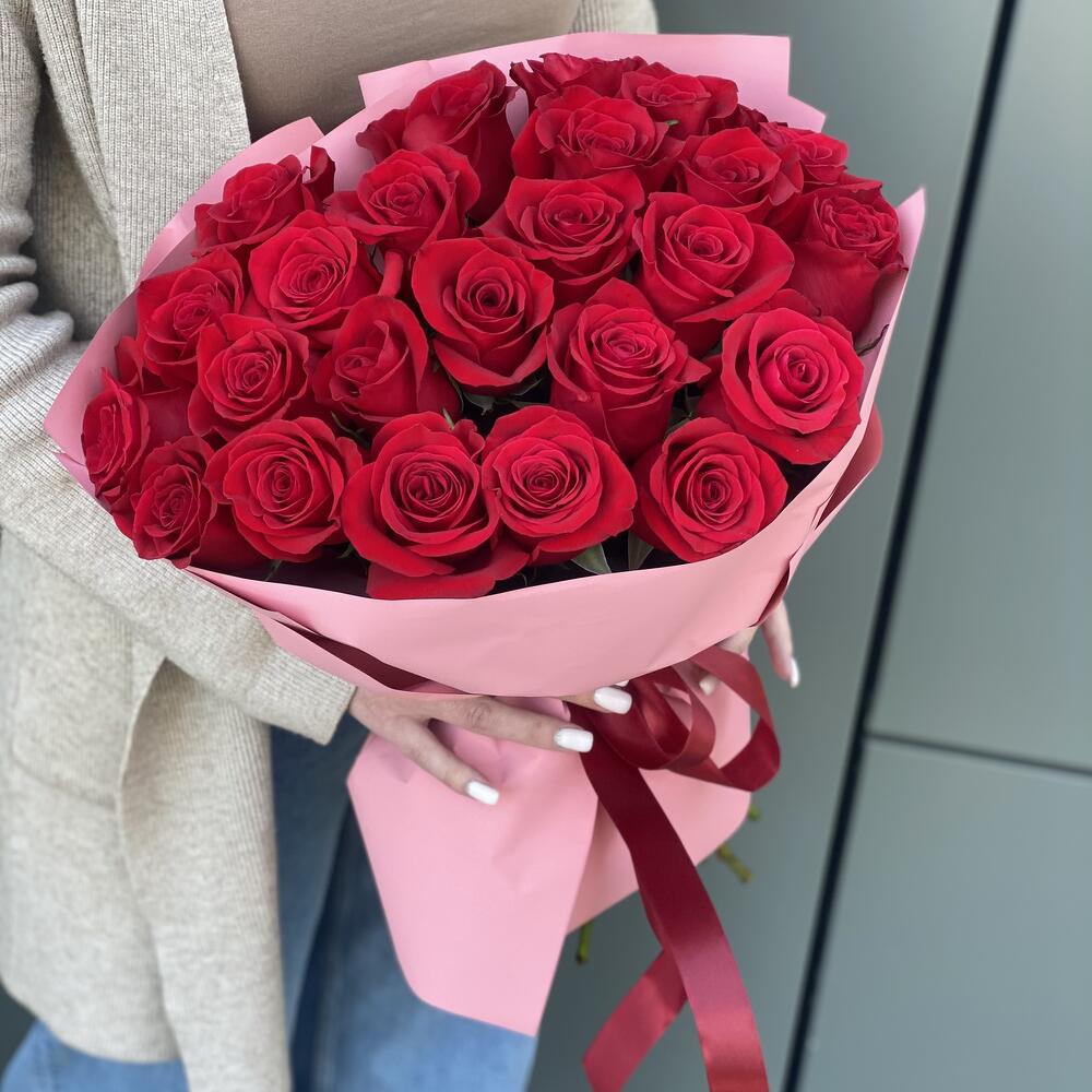 Метки: 25 роз, Красные розы, от 3000 до 4000 руб, Роза 50 см