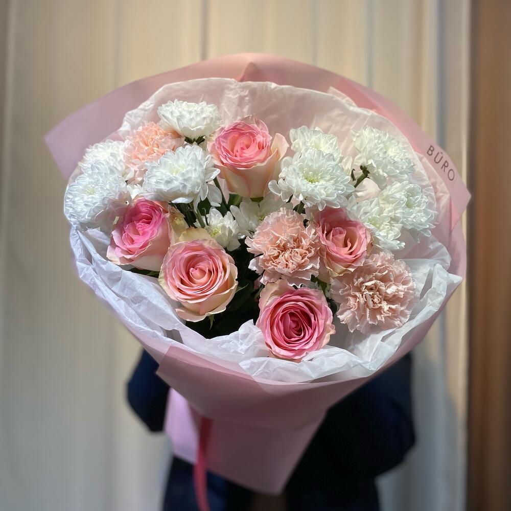 Гвоздики, Кустовые розы, Пионовидные розы, Розы