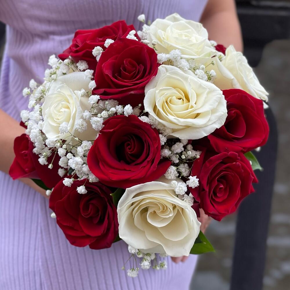 Букет невесты с красными и белыми розами