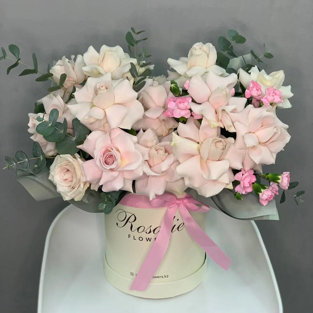 Альстромерии, Гвоздики, Кустовые розы, Лизиантусы, Розы, Хризантемы