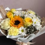 Категорий: Гвоздики, Кустовые розы, Пионовидные розы, Подсолнухи, Розы, Хризантемы