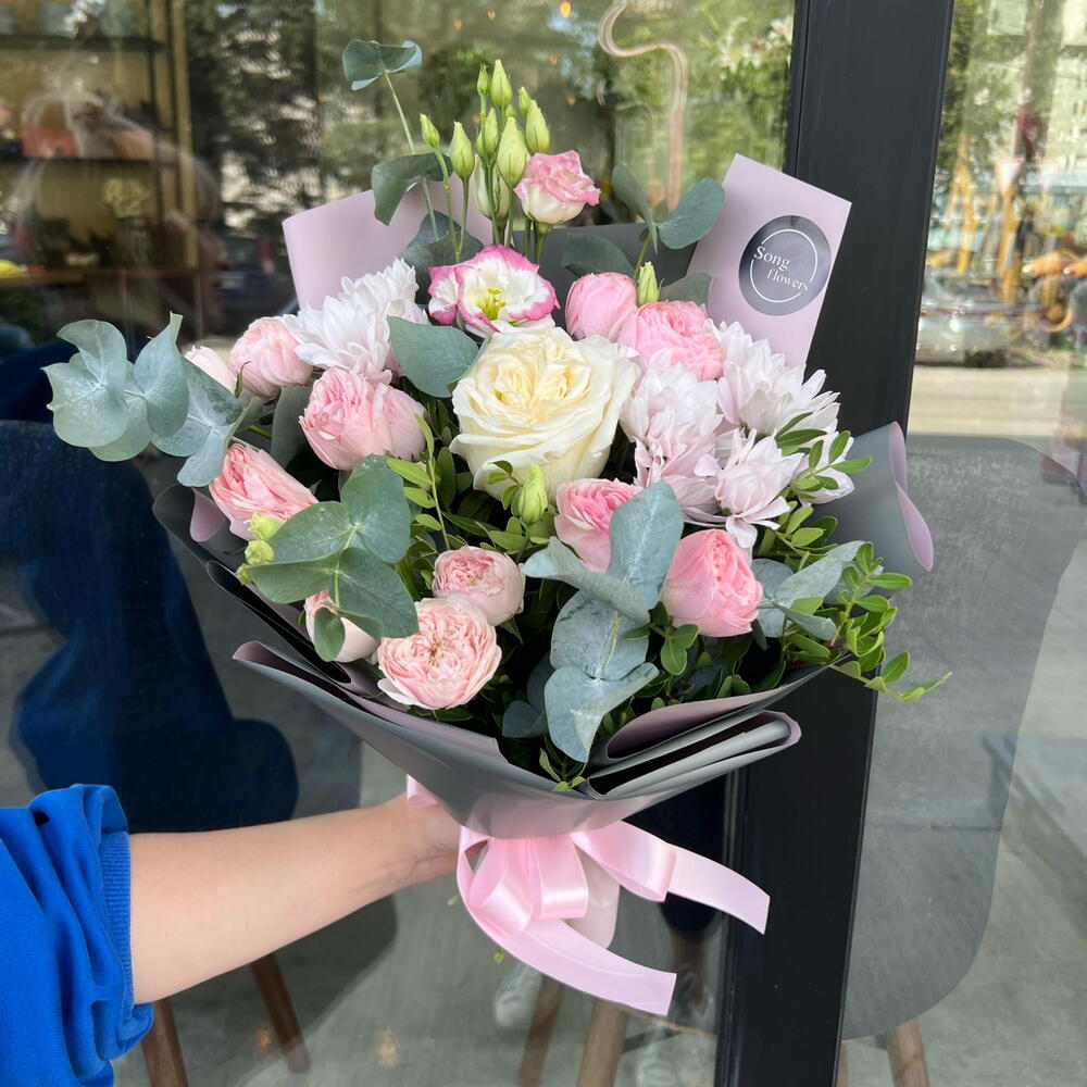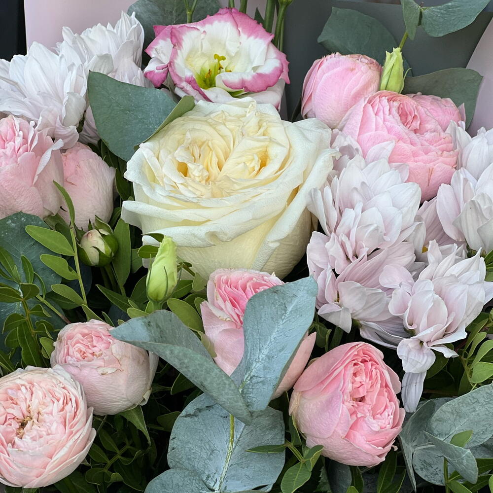 Кустовые розы, Лизиантусы, Розы, Сухоцвет