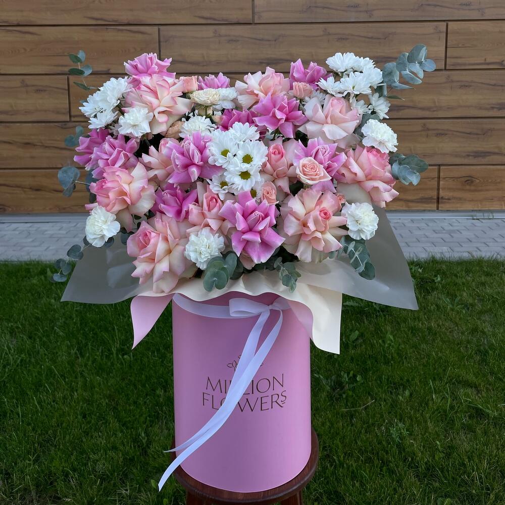 Альстромерии, Гортензии, Кустовые розы, Лизиантусы, Розы, Хризантемы