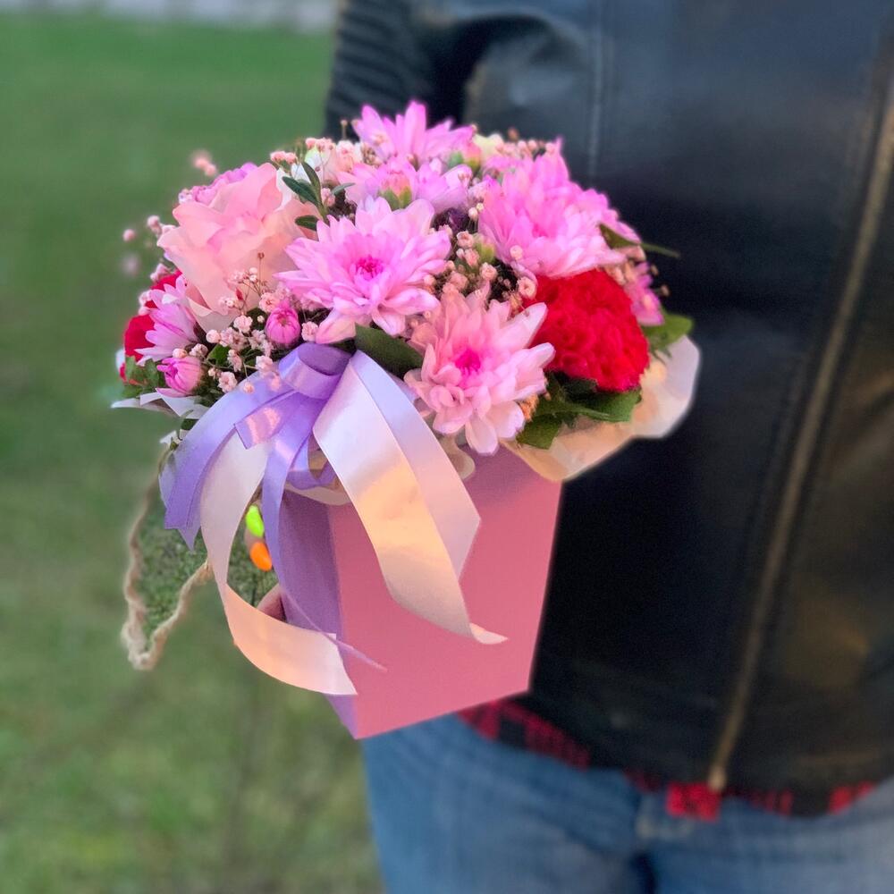 Цветы в коробочке розовой