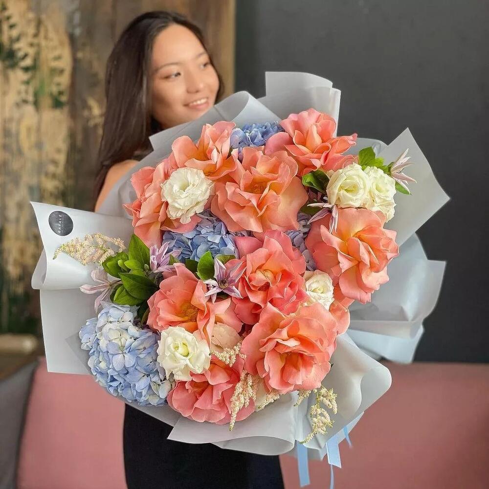 “Эвкалиптическая роскошь” гортензия и пионовидная кустовая роза