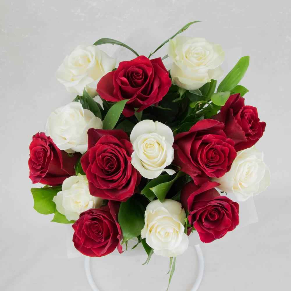 Букет из красных и белых роз с упаковкой. Приблизительный размер 35×65 Букет для тех, кто любит все естественное. Букет обернут натуральным крафтом в таких же тонах. Все символизирует вместо близости к природе. К подарку обычно прикладывается наша карточка с красиво напечатанным текстом вашего послания. К букетам обычно прилагается рекомендация по уходу и объяснением причин. При доставке температура в машине курьера контролируется нами в зависимости от сезона.