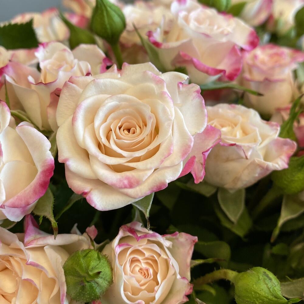Гвоздики, Кустовые розы, Пионовидные розы, Розы