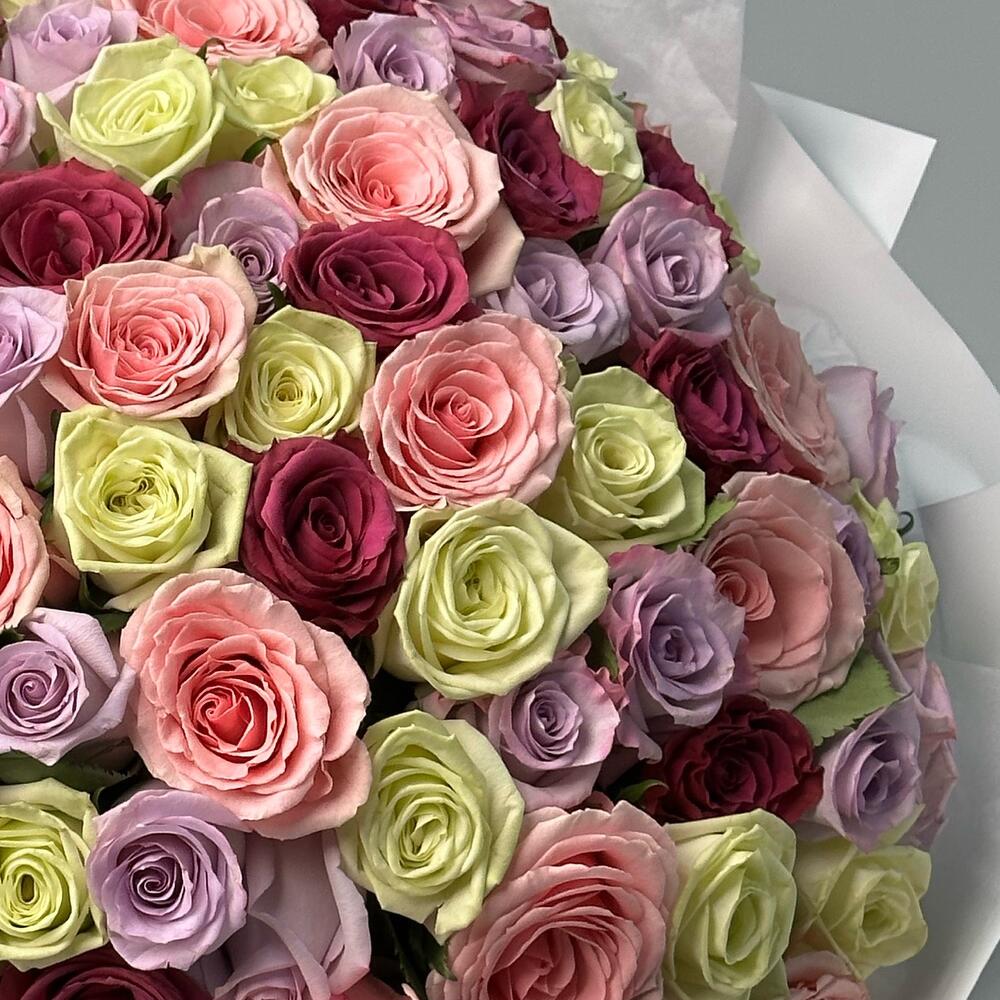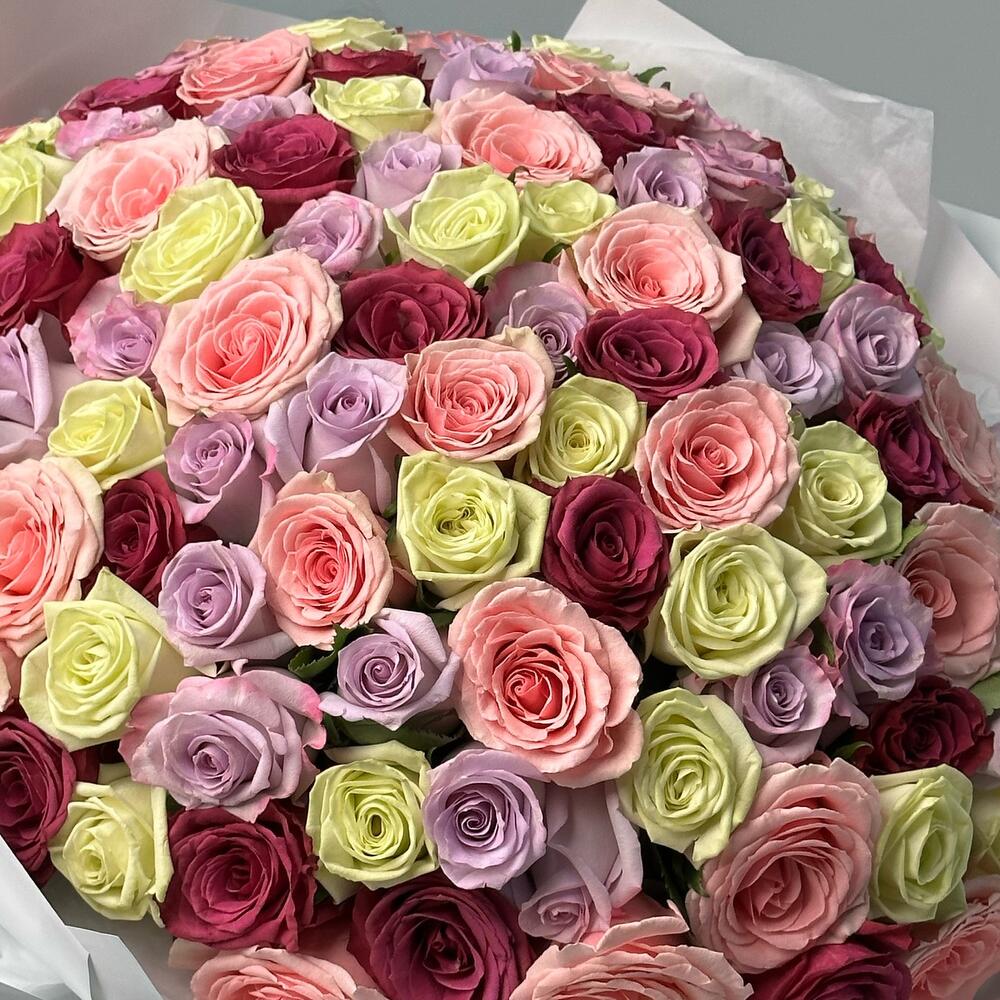 Альстромерии, Гвоздики, Кустовые розы, Лизиантусы, Розы, Хризантемы