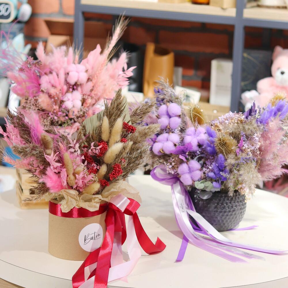 Гипсофила – 1 шт.Озотамнус – 4 шт.Хлопок – 5 шт.Пальма – 1 шт.Колосья – 10 шт.Лагурус – 17 шт.Сетария – 2 шт.Кашпо керамическое – 1 шт.Открыточка с вашими пожеланиями – 1 шт.Шоколадка – 1 шт.Стифа – 1 шт.