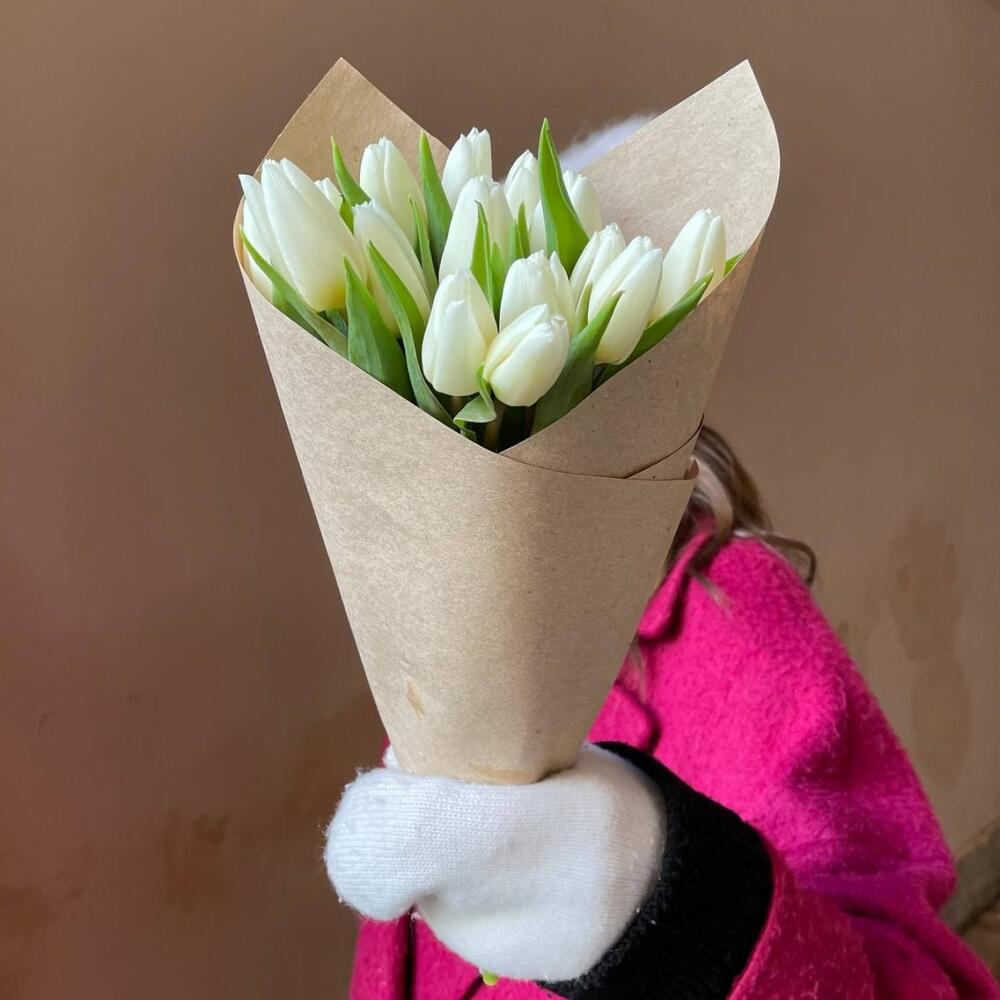 Крафтовая упаковка – 1 шт.Тюльпан белый – 15 шт.