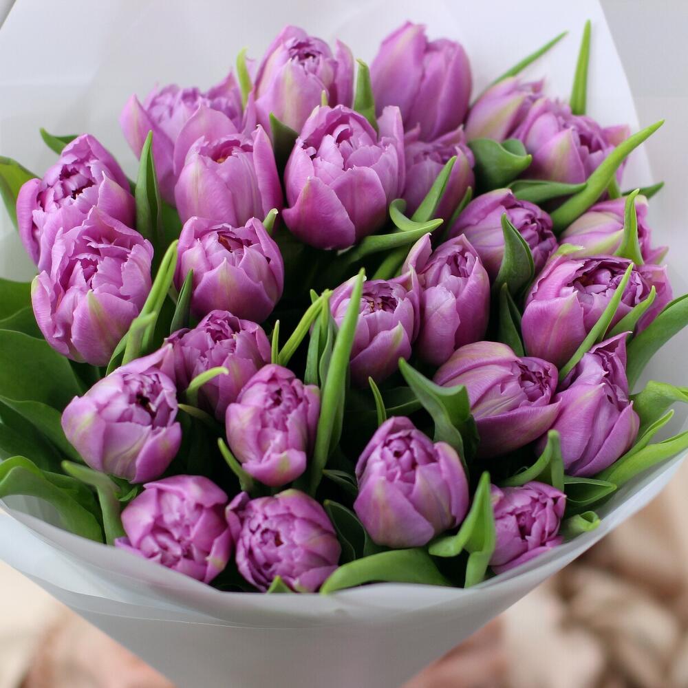 25 пионовидных сиреневых тюльпанов дабл прайс. Букет 200 Kimbirly Flowers