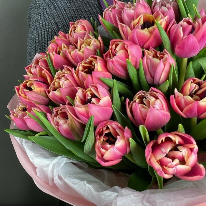 Тюльпан – 25 шт.Лента атласная – 1 шт.Бумага тишью – 1 шт.пленка калька – 1 шт.